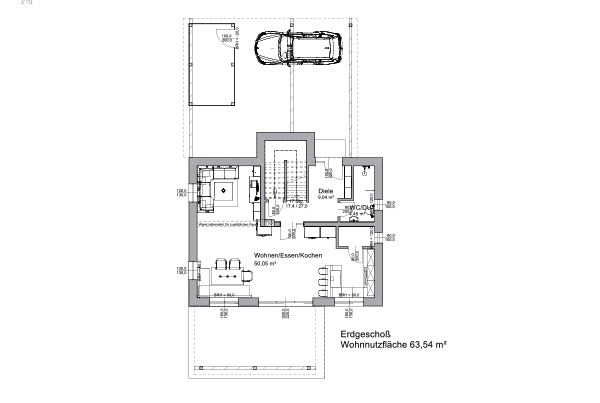 Über den Wintergarten-ähnlichen Charakter des vorgezogenen Wohnbereiches erlebt man